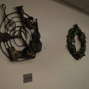 Appreciation of Art professor, Barbara Wallace is known for her famous paper mache models that are seated in the Broadway lobby. Before the event, many students believed Wallace’s work was made of metal for it’s metallic color. Wallace explained in the showcasing, that if the art pieces were to be metal they would be extremely heavy. “ I have been concerned for the environment and believe that I could use reuse recycled materials to make art. Not only is it inexpensive but it is meaningful,” said Wallace.